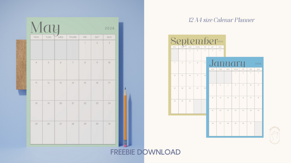 Pantone colour palettes for 2026 have been used to design this simple monthly planner for you all, with brighter tones, darker text and empty space to make your mark! Go ahead, I believe this year will be your best yet!